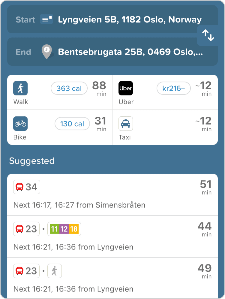 Cities are becoming more multimodal as new modes like e-bikes and ride-hailing are starting to compliment traditional public transport. We’ve added them all, so you can get from A to B in every way possible.