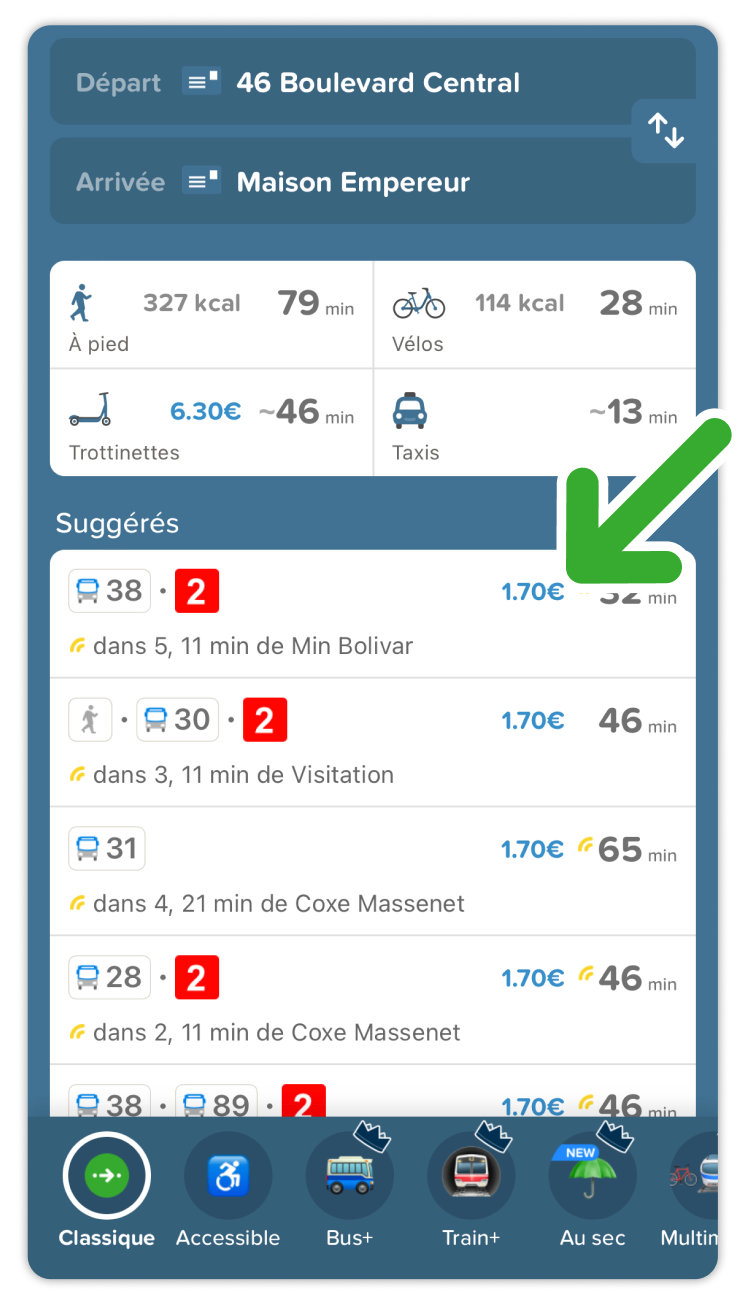 2️⃣ Voir les tarifs à côté de chaque trajet