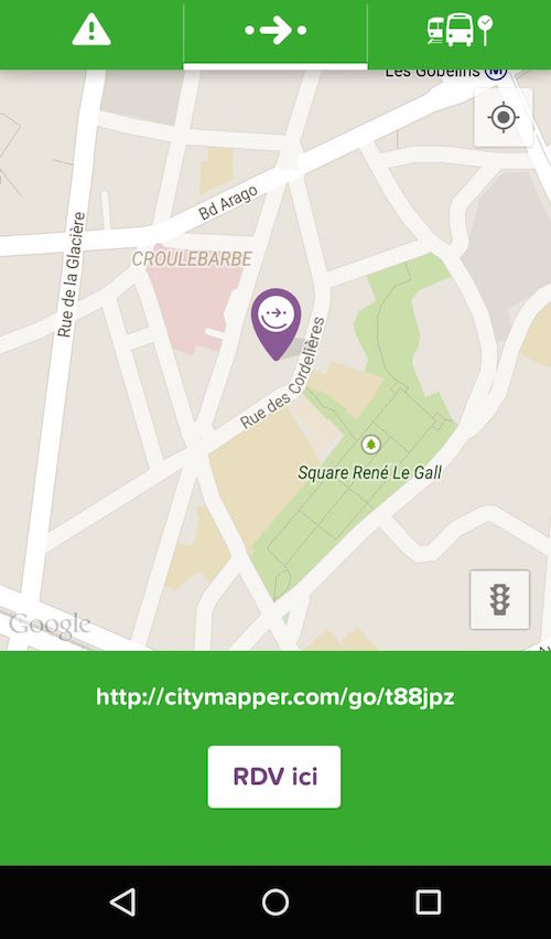 Partagez votre position actuelle (ou n'impotre quelle localisation) en un clin d'œil. Il suffit de faire glisser l'écran d'accueil vers le bas, et l'appli génèrera un lien tout malin pour envoyer des instructions à vos amis pour vous rejoindre.
