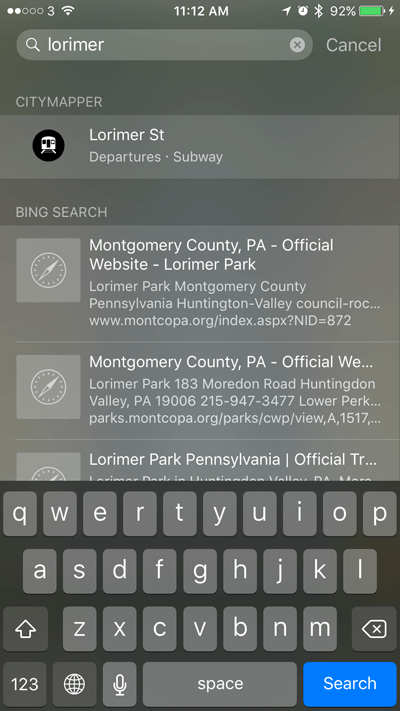 One of the best new things in iOS 9 is the way you can search Citymapper's content straight from iOS Spotlight Search.