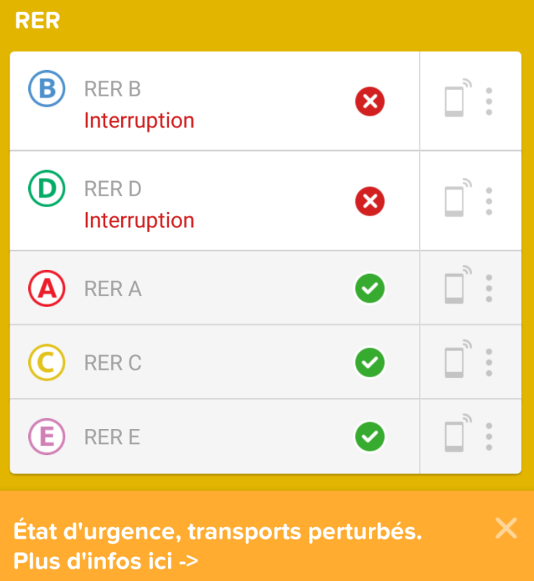 Vous pouvez voir les fermetures de ligne en temps réel dans l'onglet "Ville" et sur citymapper.com/paris/status